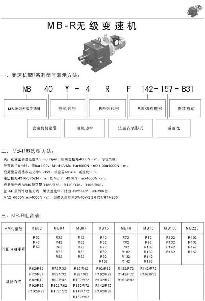 MB-R無級變速機(jī)型號表示法選型方法MB-R組合表