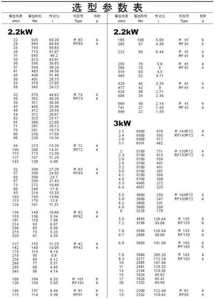 選型參數(shù)表2.2kW(續(xù))和3kW