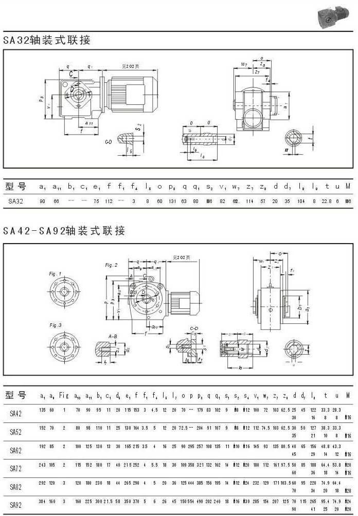 SA32軸裝形式聯(lián)結參數(shù)圖表SA42-SA92軸裝形式聯(lián)結參數(shù)圖表